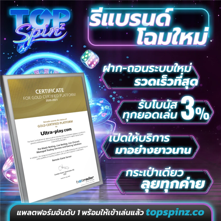 TOPSPINZ เว็บพนันออนไลน์ครบวงจรที่รวบรวมเกมเดิมพันหลากหลายรูปแบบไว้ในที่เดียว นำเสนอประสบการณ์การเดิมพันที่เหนือระดับด้วยระบบที่ทันสมัย การันตีความปลอดภัยด้วยใบอนุญาตถูกกฎหมายจากต่างประเทศ ผู้เล่นสามารถเข้าถึงบริการได้ตลอด 24 ชั่วโมงผ่านทั้งเว็บไซต์และแอพพลิเคชั่นมือถือที่รองรับทั้งระบบ iOS และ Android พร้อมระบบฝาก-ถอนอัตโนมัติที่รวดเร็วทันใจ ไม่มีขั้นต่ำ มาพร้อมโปรโมชั่นสุดพิเศษมากมายสำหรับทั้งสมาชิกใหม่และสมาชิกเก่า ตอบโจทย์นักเดิมพันทุกระดับด้วยอัตราการจ่ายเงินที่สูงและยุติธรรม